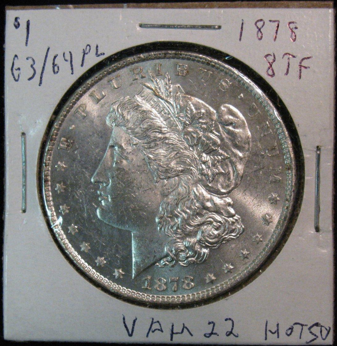 424. 1878 P Morgan Dollar. VAM 22. MS 63/64 PL