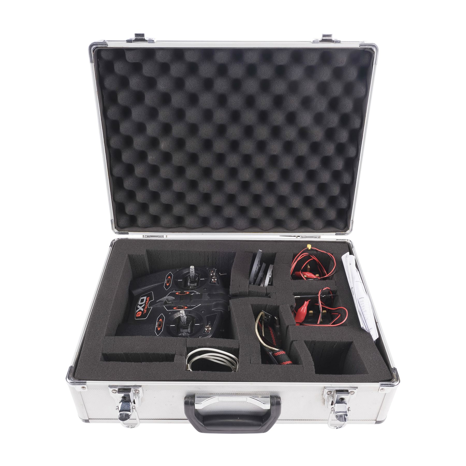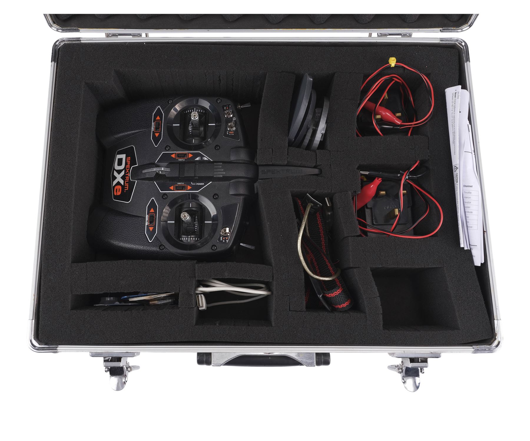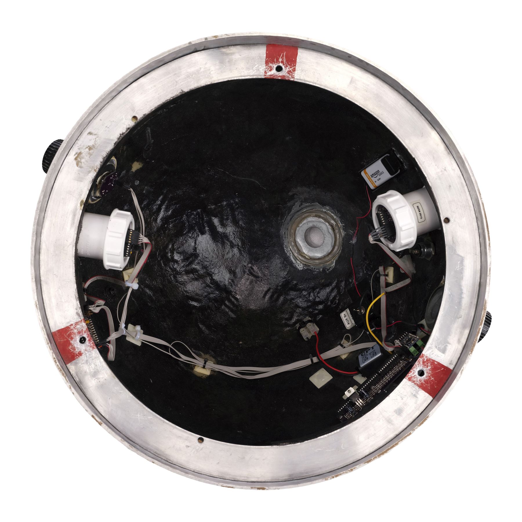 R2-S8 comes with a rechargeable battery pack and a Spektrum DXe remote control to operate its movement and head. The remote control comes in a foam-padded carrying case, along with various accessories. The droid exhibits wear from production use, aside from the intentional distress. There are some scuffs and scratches, and some small areas exhibit chipped paint. Dimensions: 29.5" x 27.5" x 43.25" (75 cm x 70 cm x 110 cm)