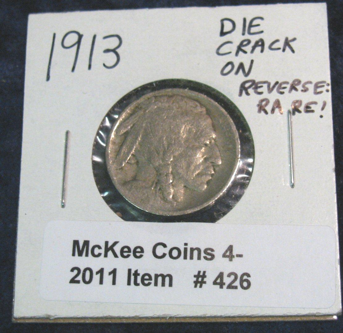 426. 1913 P Type One Buffalo Nickel with large reverse die crack.