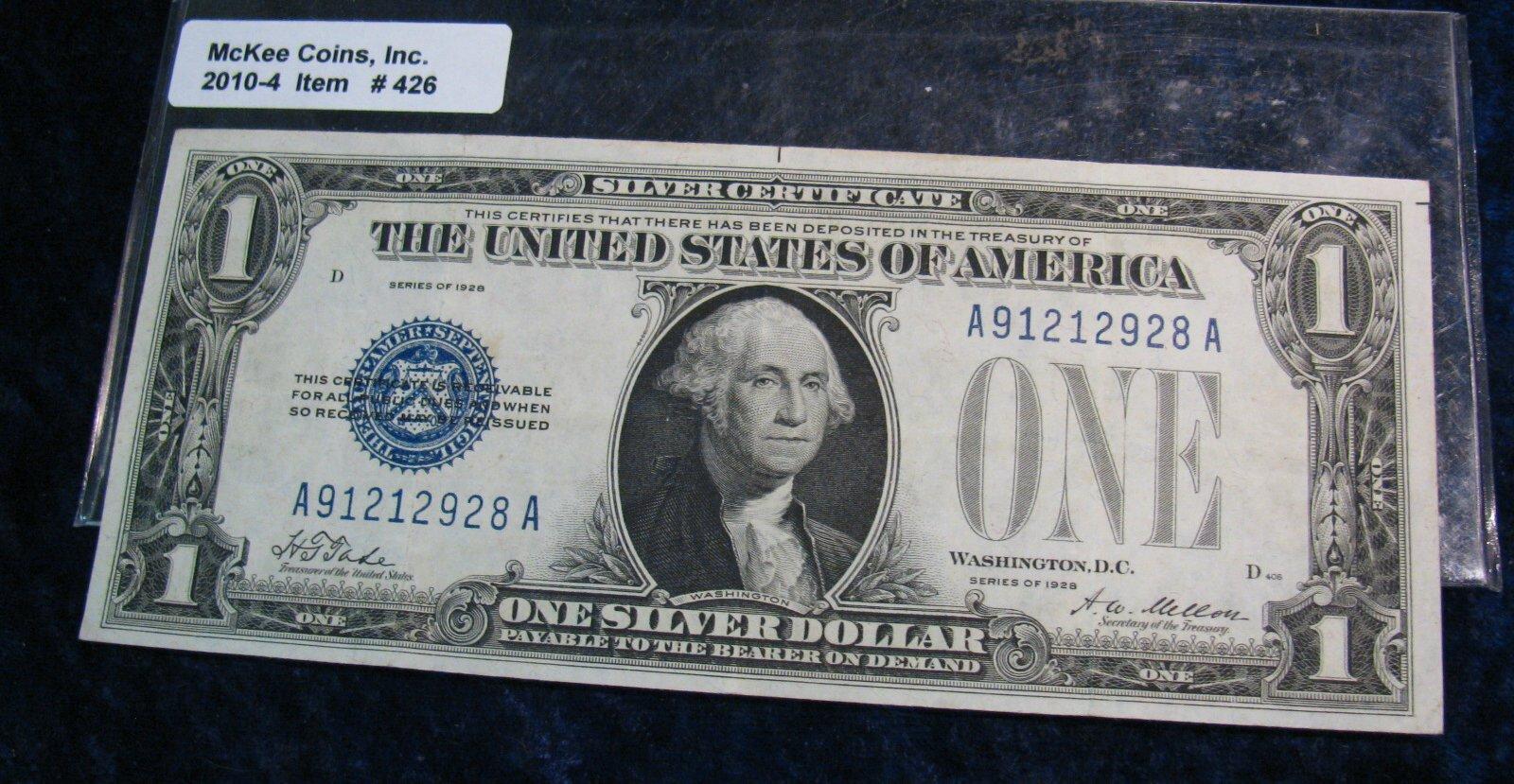 426. Series 1928 $1 Silver Certificate "Funny Back" VF. Some penciling in the back border.