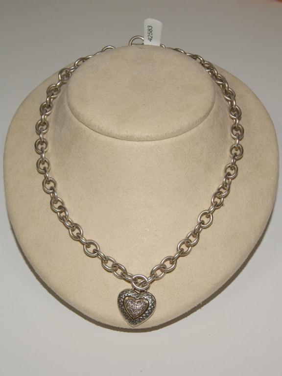 Total Retail $1,230 14Kt Yellow Gold & .925 Silver (#1) Retail Price $1,230 14Kt Yellow Gold & .925 Silver Diamond Heart Design Two Tone Ladies Necklace