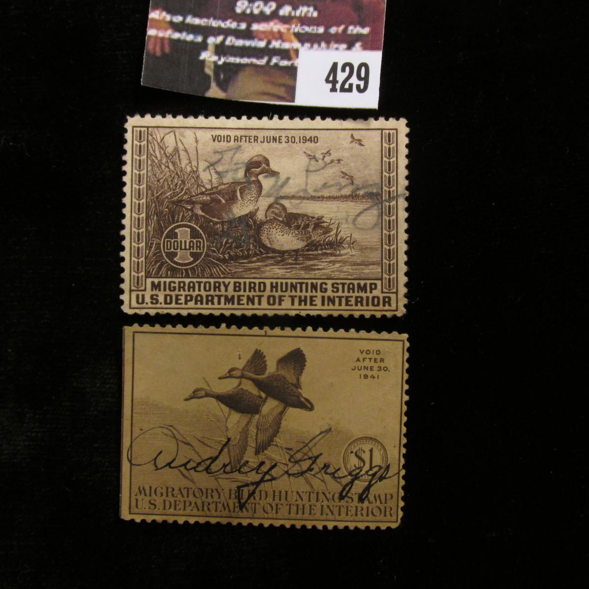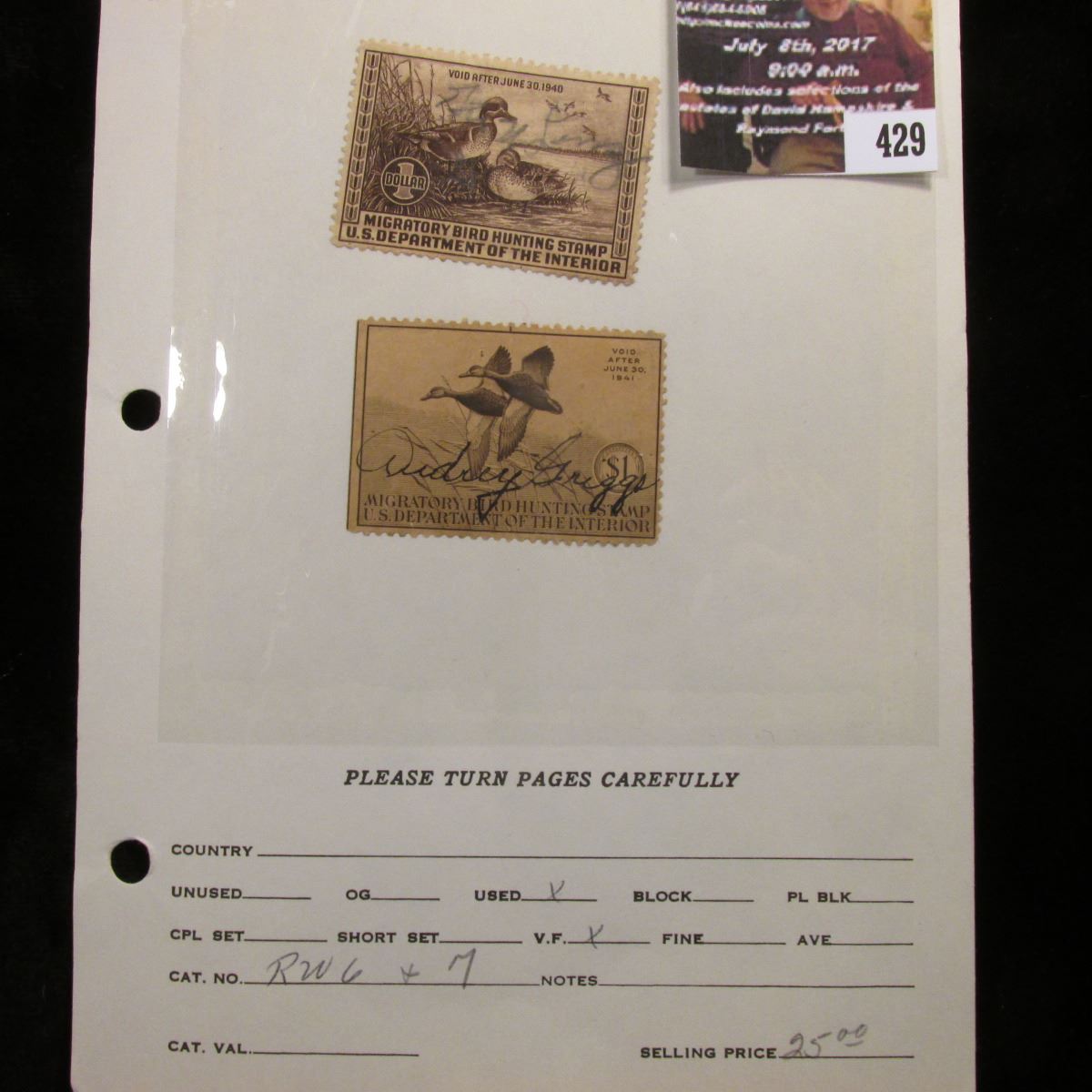429.1940 RW6 & 1941 RW7 U.S. Migratory Bird hunting Stamps, used, VF, signed.