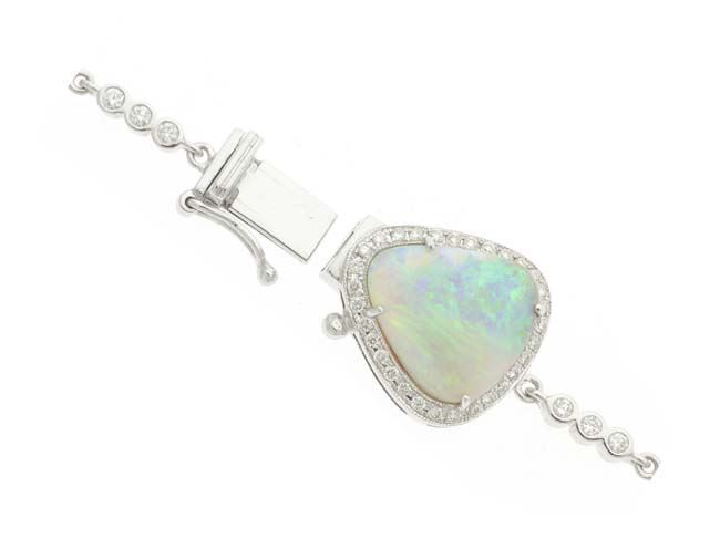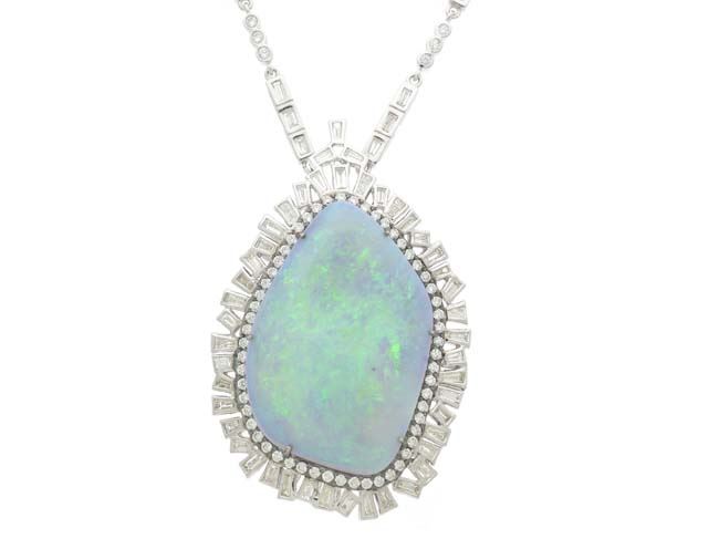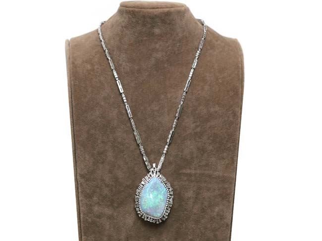 18K GOLD DIAMOND ANDOPAL NECKLACE/Diamond 1 TCW:3.54/Diamond Color & Clarity:G-H/SI1-SI3/Diamond 2 TCW:2.12/Gemstone Count 1: /Gemstone 1 TCW:37.35/Pendant Dimension:/Chain Length:/Gemstone 2 TCW:/Gemstone 3 TCW:xxx/Metal Type 1:18KxxxWHITE GOLD/Gram Weight:37.75/Metal Type 2:/Weight Gram:xxx&/Weight Gram:/Gross Weight:43.41