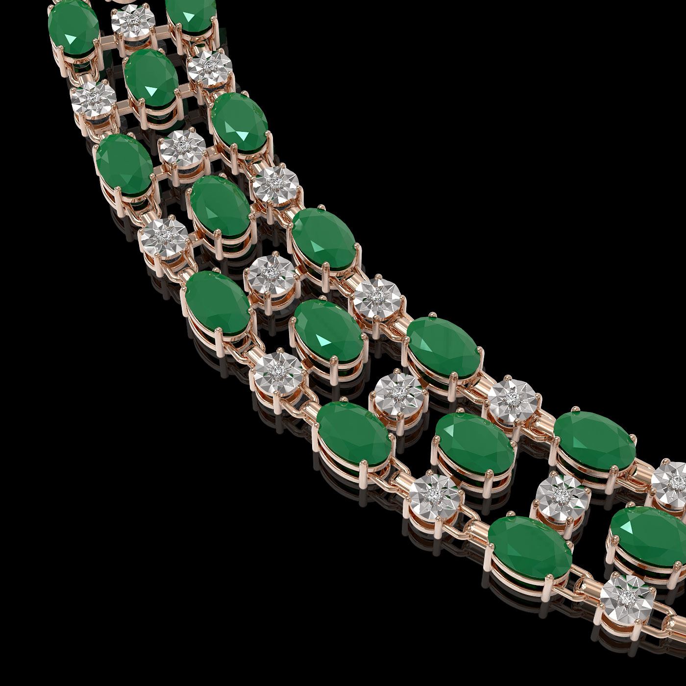 REF-527M3G - SKU: 62700 ---- 43.07 ctw Emerald & Diamond Necklace 10K Rose Gold