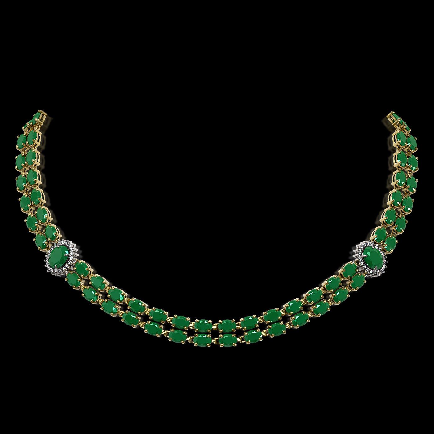 REF-527Y3X - SKU: 44170 ---- 43.13 ctw Emerald & Diamond Necklace 14K Yellow Gold
