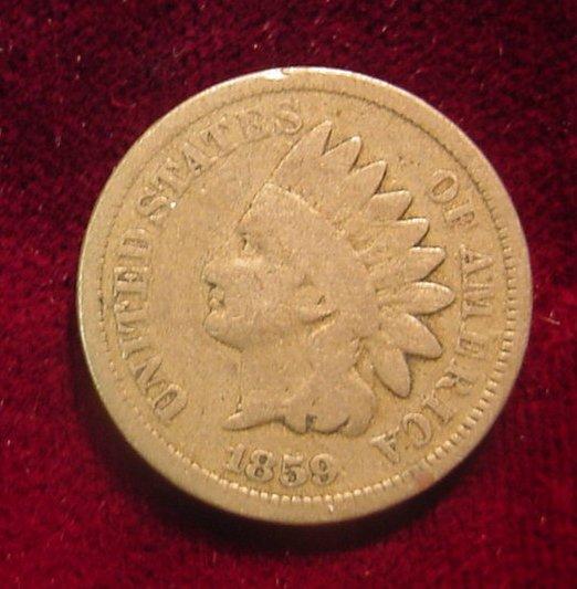 43. 1859 Indian Head Cent. Laurel Wreath Reverse. Vg/G