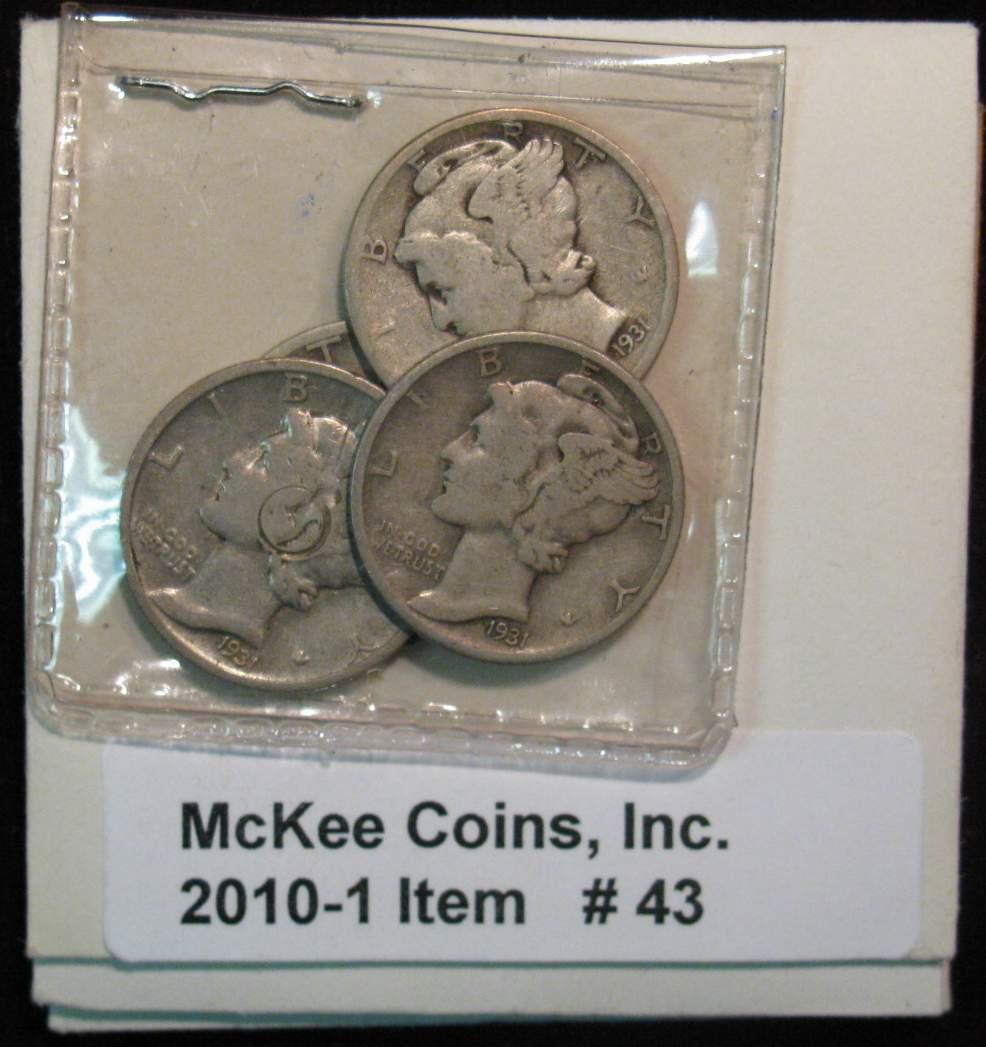 43. 1931P, D, & (2) S Mercury Dimes. All VG. Redbook $21.00