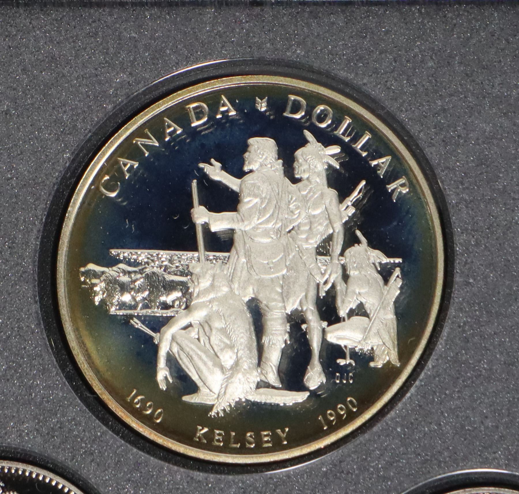 INCLUDES SILVER DOLLAR + VOYAGEUR DOLLAR CANADIAN CURRENCY 7 COIN SET WITH CERTIFICATE OF AUTHENTICITY HENRY KELSEY TRICENTENNIAL