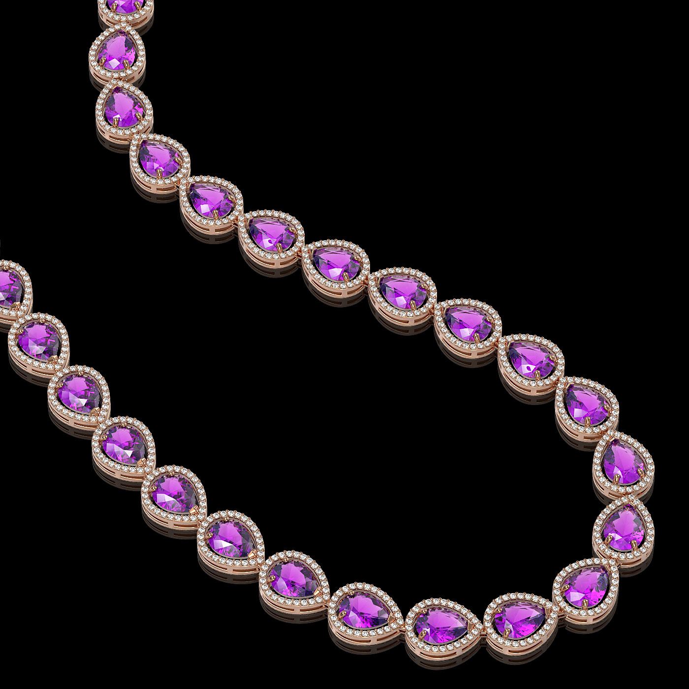 REF-603H3R - SKU: 41226 ---- 43.2 ctw Amethyst & Diamond Micro Pave Halo Necklace 10k Rose Gold