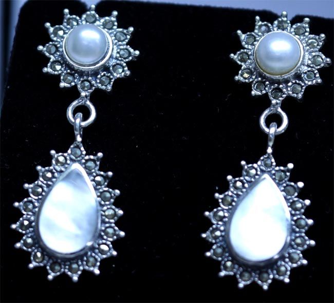 43.30 CTW PEARL/SEMI PRECIOUS ANTIQUE LOOKING JEWELRY . **|**|** 43.30 CTW PEARL/SEMI PRECIOUS EARRINGS ANTIQUE LOOKING JEWELRY .925 STERLING SILVER ; MSRP: $200