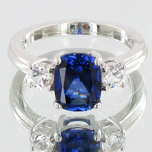 43.3ct Lab Sapphire/Diamond White Gold Vermeil on Sterling Set (JEW-004157)