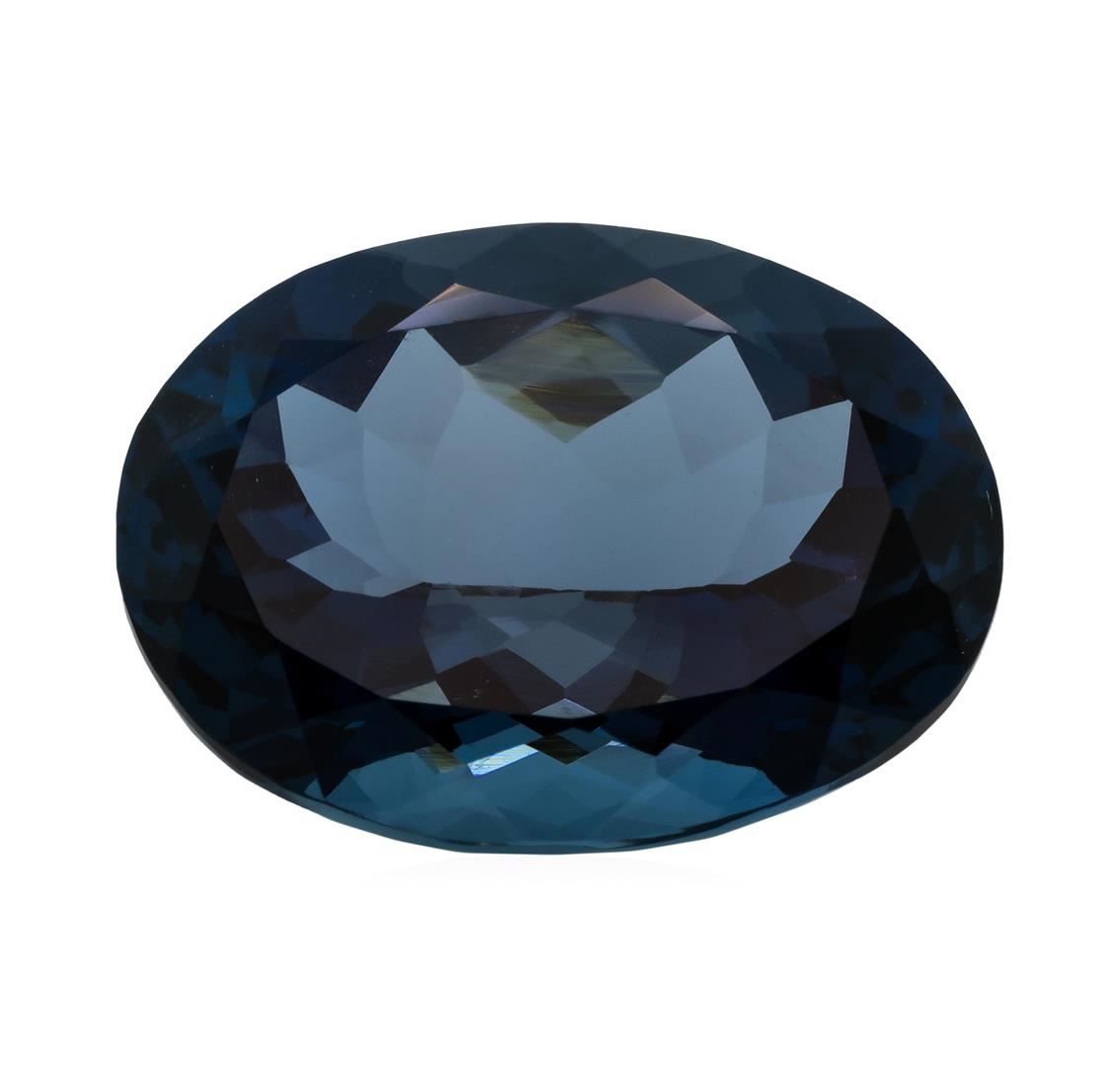 One natural oval cut london blue topaz with an exact weight of 43.46ct., clarity is eye clean, greenish blue, medium dark. Gemological Appraisals Services estimates the retail value at $869.2 GAS Appraised.