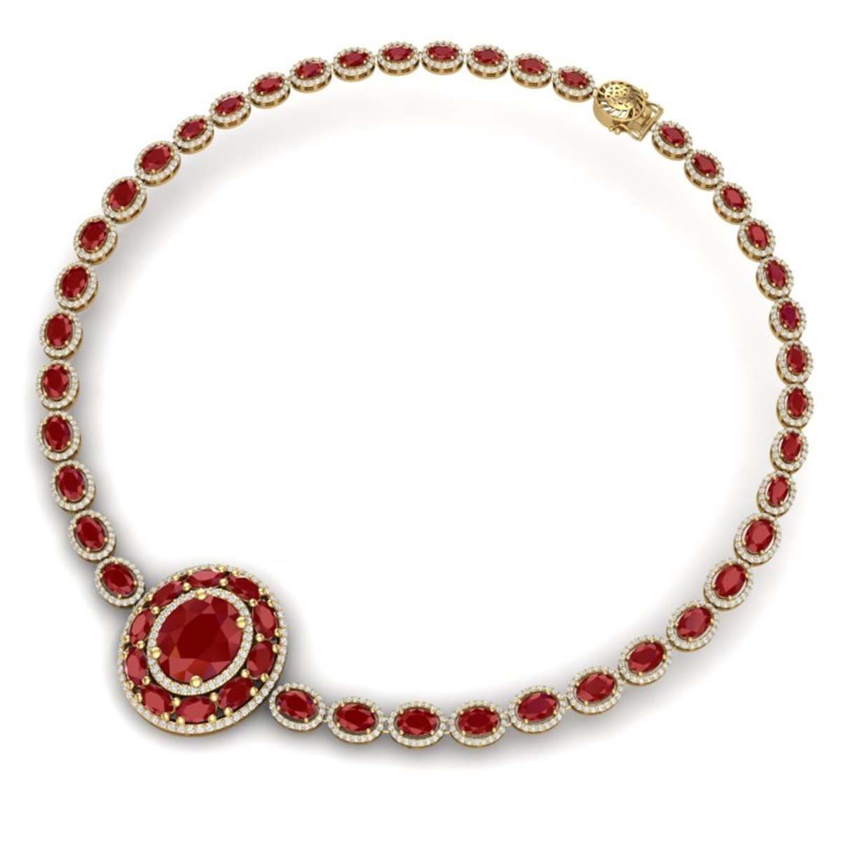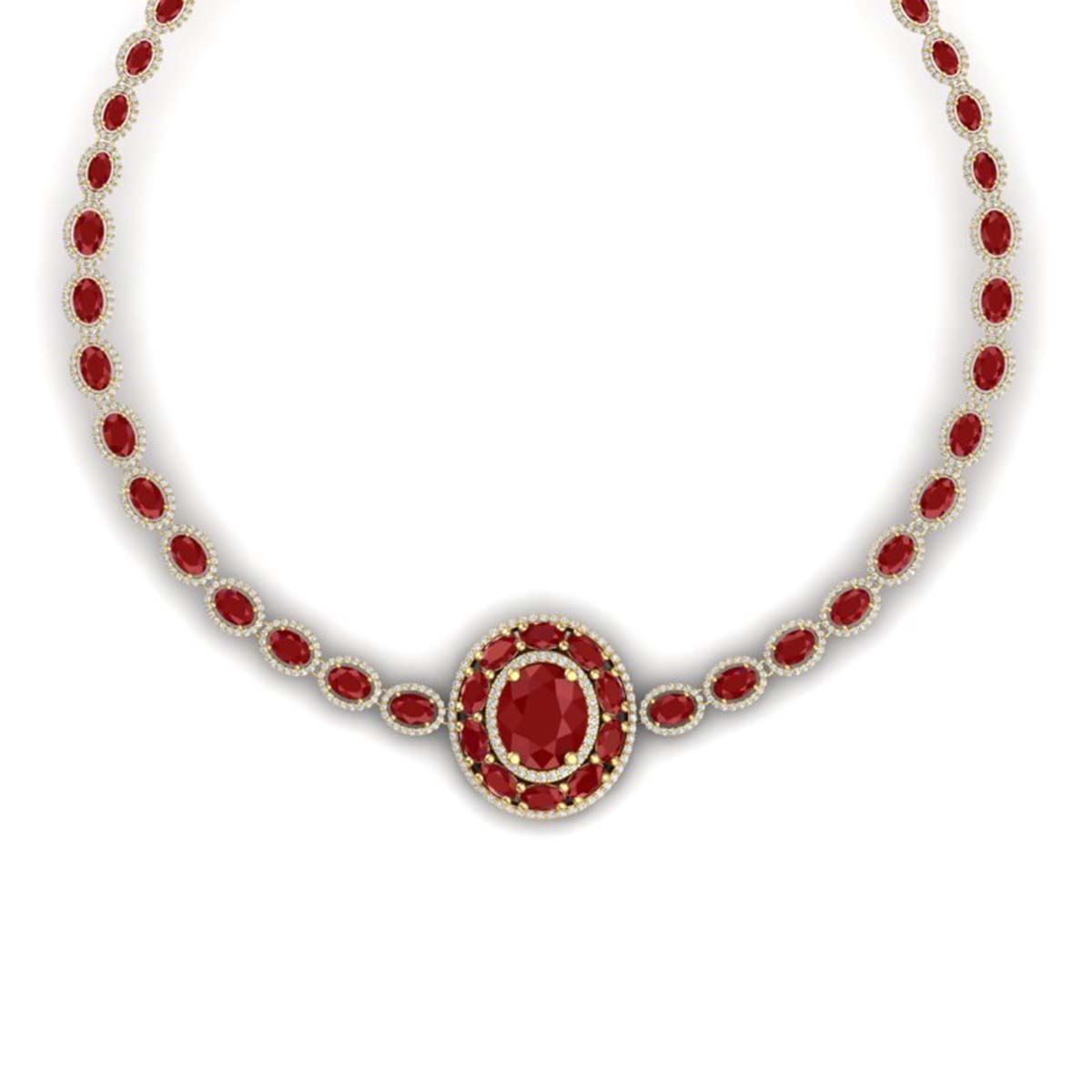 43.54 ctw Ruby & VS Diamond Necklace 18K Yellow Gold