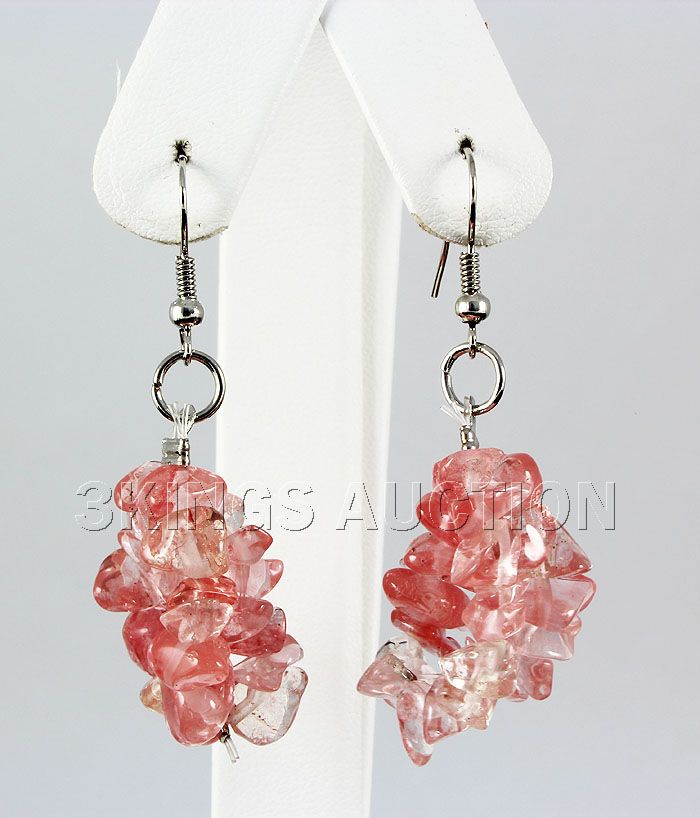 43.70CTW 2in. PINK ROSE CHIPPED STONE HOOK EARRING **|**|** 43.70CTW 2in. PINK ROSE QUARTZ CHIPPED STONE METAL HOOK EARRING ; MSRP: $300