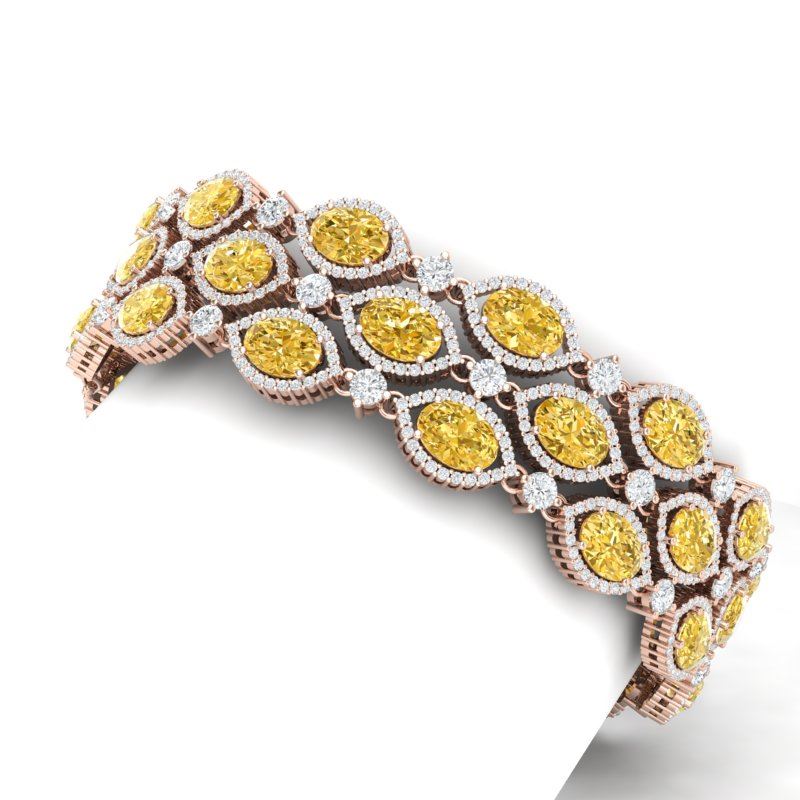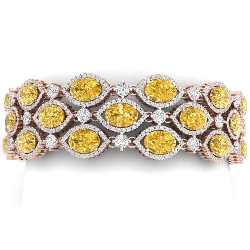 43.84 CTW Royalty Canary Citrine & VS Diamond Bracelet 18K Rose Gold ---- Luxury Designer Brand Bracelet Appraised Retail Price at $89,600 ---- SKU Number US38902 18K Rose gold Bracelet Size is 7 Inches, Can custom fit length, Bracelet measuring approx. 3/4 x 7 Inches, weighing in total approx. 32 grams. Made in the USA and is stamped 18K, Main stone 33.84 carat total weight containing 36 pieces of Translucent Canary Yellow color with AAA quality Oval shape cut Citrine Fancy , Stone #2 10 carat total weight containing 846 pieces of G-H color with VS/SI quality Round shape cut