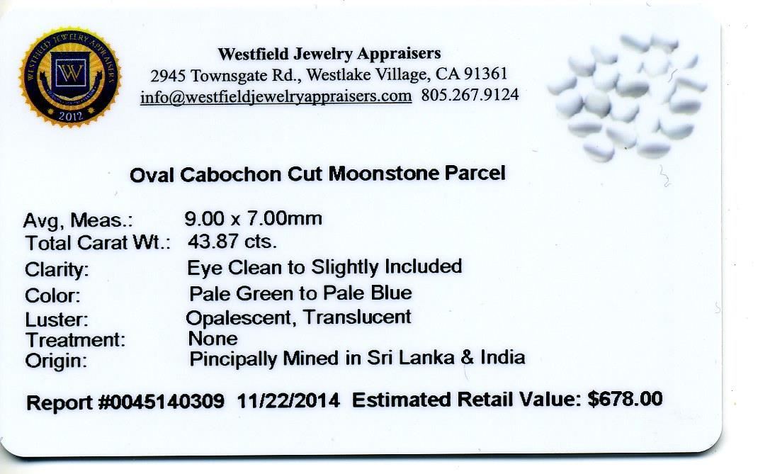 43.87ctw. Oval Cabochon Cut Moonstone Parcel. Westfield Appraised at $678.00.
