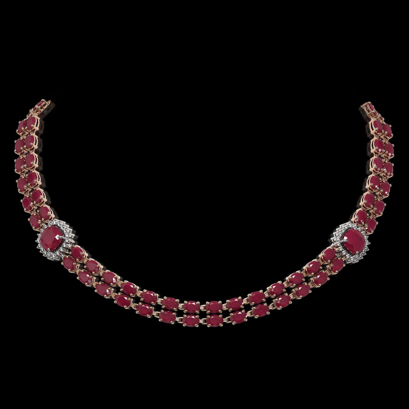 43.97 ctw Ruby & Diamond Necklace 14K Rose Gold