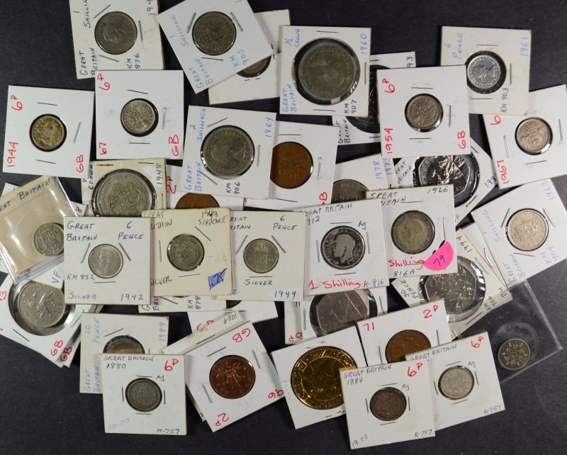 43 Gr Britian COINS - 9 SILVER - 1880, '84, '85. 1930, '42, '43, '44 SIX PENCE