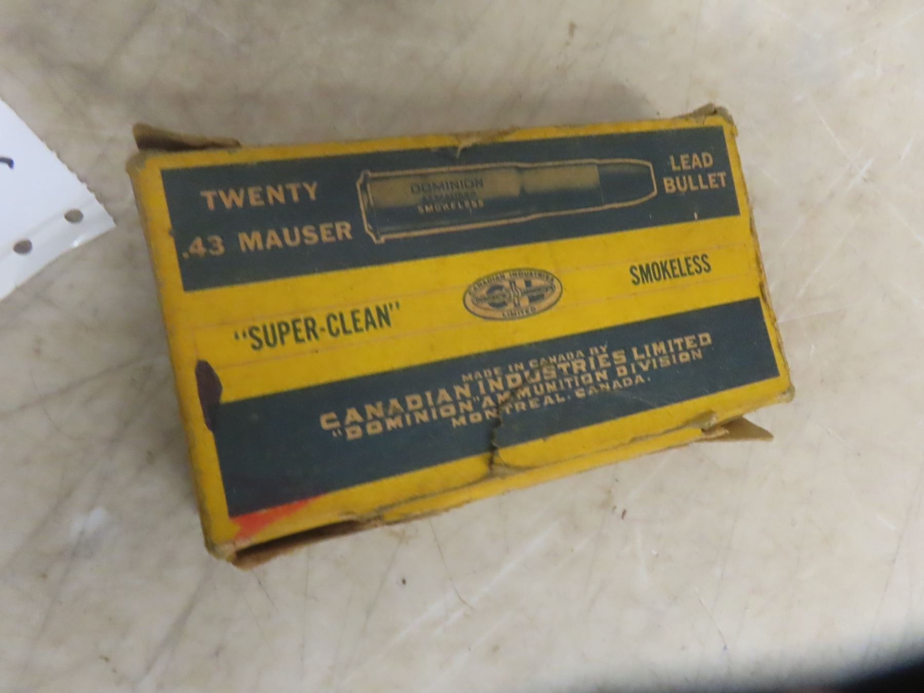 43 Mauser Ammo Vintage Box 40 Rounds **** Must Have Pal, MUST PRESENT PAL WHEN PAYING INVOICE. WE DO NOT AND WILL NOT SHIP AMMO. IF YOU WIN AMMO YOU WILL BE RESPONSIBLE TO PAY FOR IT AND RESELL IT UNDER YOUR OWN CONSIGNMENT.
