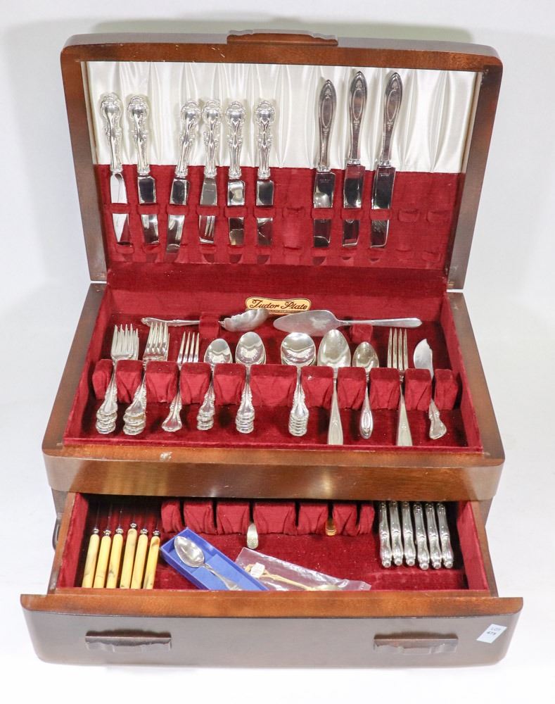 SILVERWARE. IN TUDOR PLATE WOODEN CHEST. GENERAL.