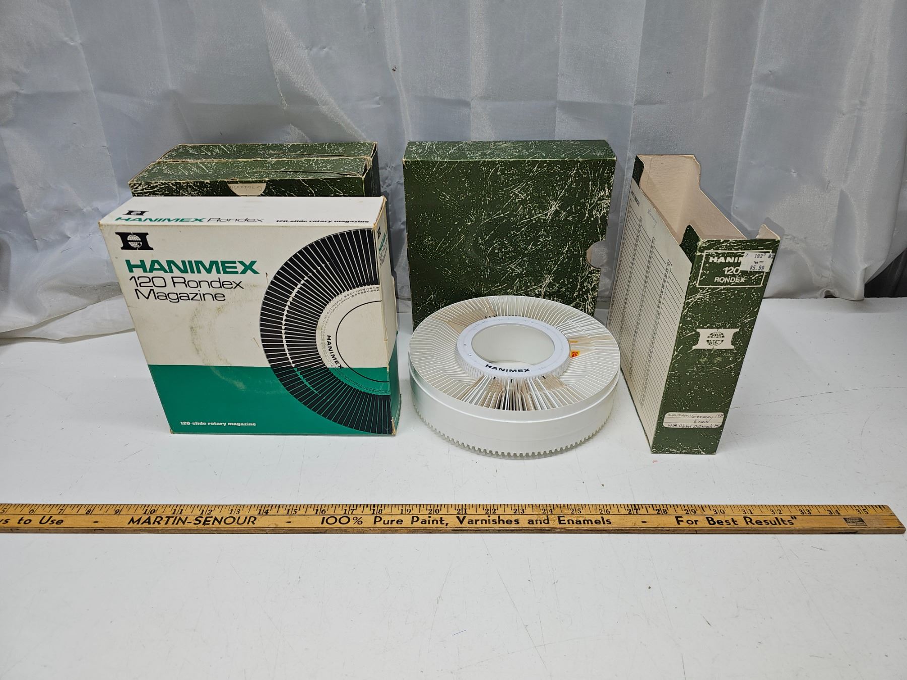 35mm Slide projector with 4 - Hanimex 120 Rondex Magazines w/ slide.
