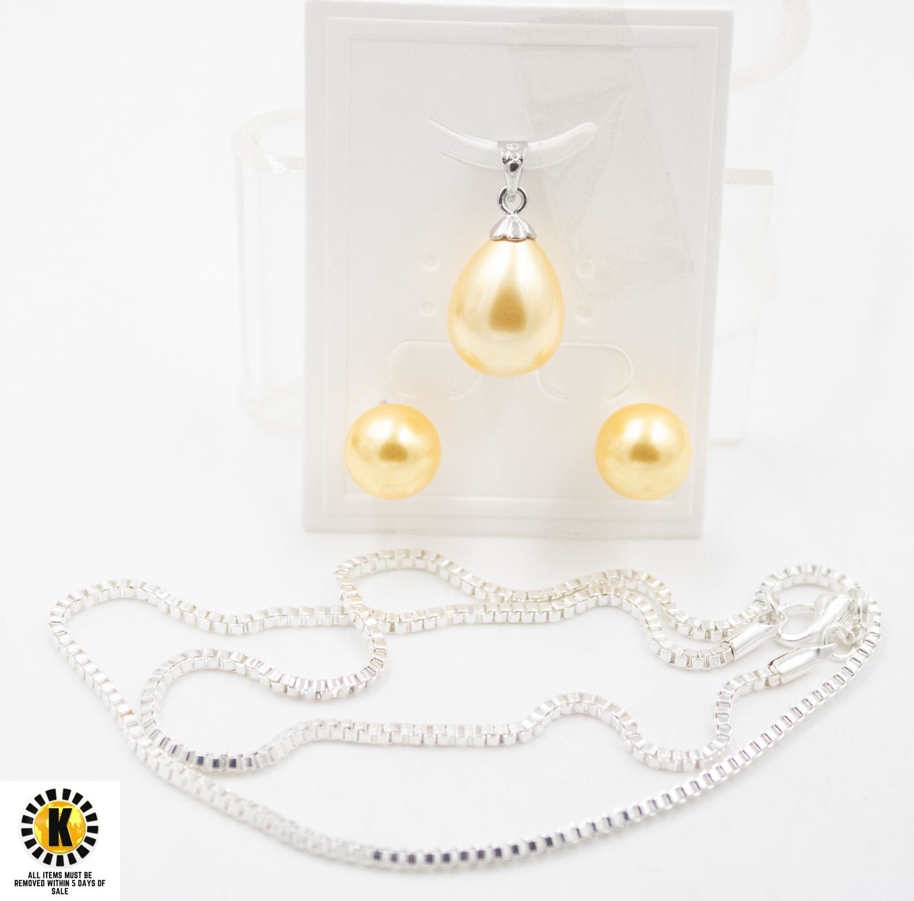 MOTHER OF PEAL /NECKLACE SILVER PLATE 18"/10MM, 12X16 MM/ GOLDENT /EARSNAIL 925 STERLING SILVER
