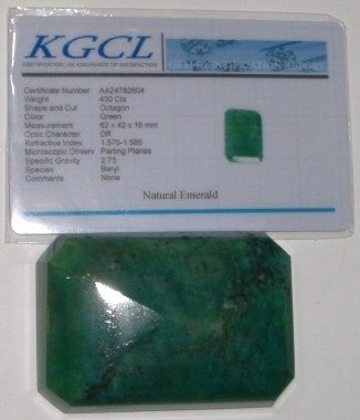 430 CARAT *HUGE* EMERALD OVAL CUT/FACETED & POLISHED *GEMSTONE COMES WITH KGCL CERTIFICATE AND IS OUT OF PRIVATE ESTATE*!!! ***Coin, Currency & All Items Listed in this auction - Grades, Conditions and Values are not Safe Deposit Coins LLC Responsibilty. Grades, Condition and Values are determined by Consigner(s) & Buyers ONLY