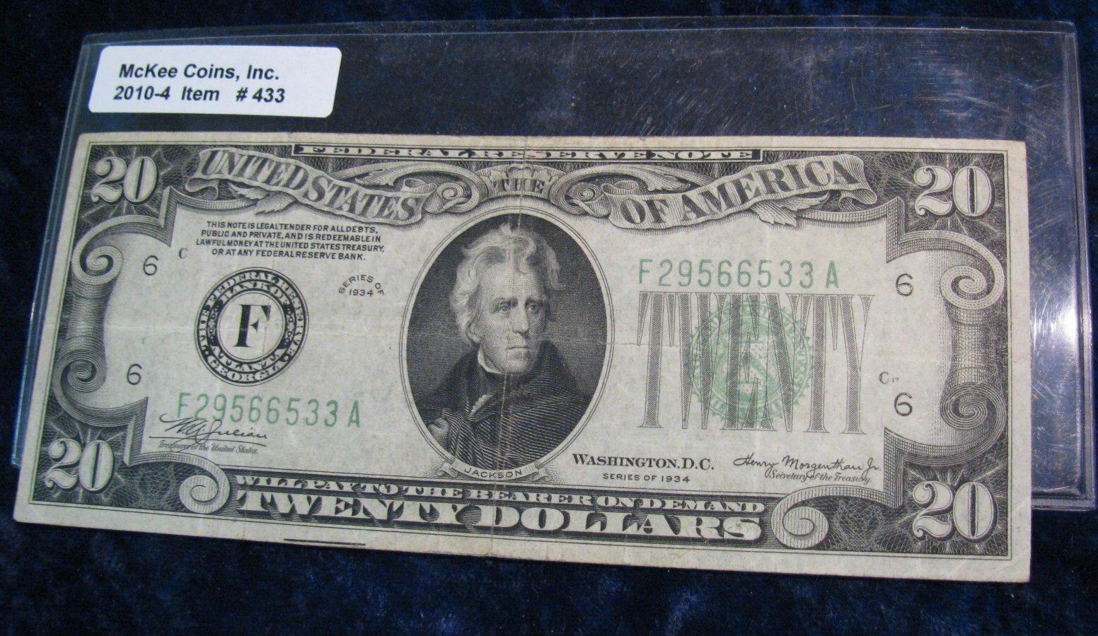 433. Series 1934 $20 Federal Reserve Note "Atlanta, Ga.". F-12.