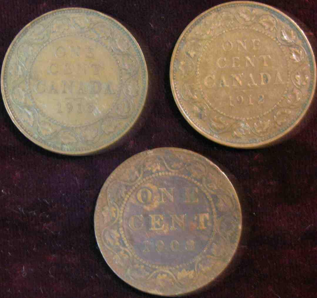 434. 1908, 12, & 13 Canada Large Cents. VG-VF.