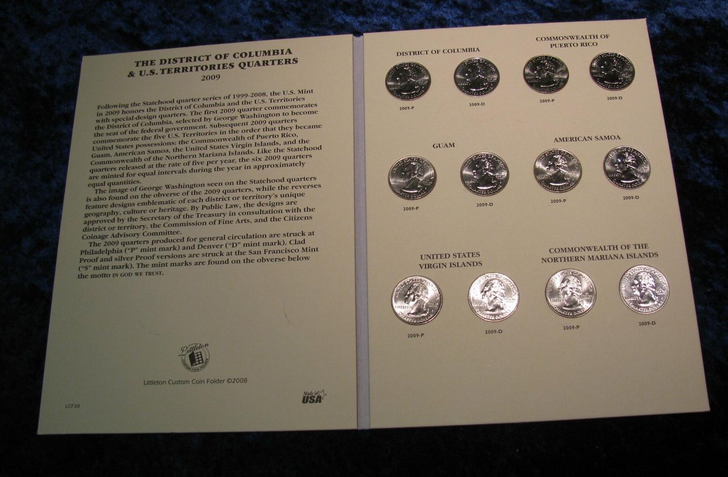 434. District of Columbia & U.S. Territories Book with 12 BU Quarters.