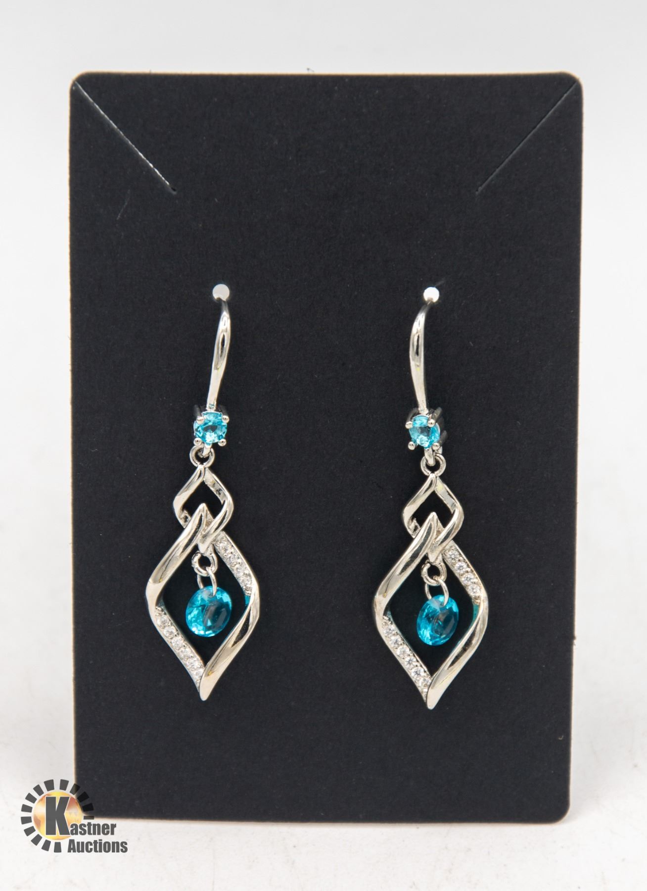 FLOATING WITH A 3.7 MM STONE SET ABOVE THAT IN A SILVER TONE EARRING WITH CLEAR STONE ACCENTS