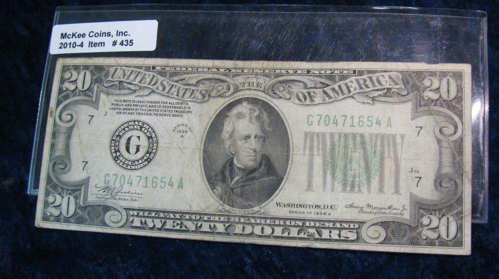 435. Series 1934A $20 Federal Reserve Note. "Chicago, Ill." VG.