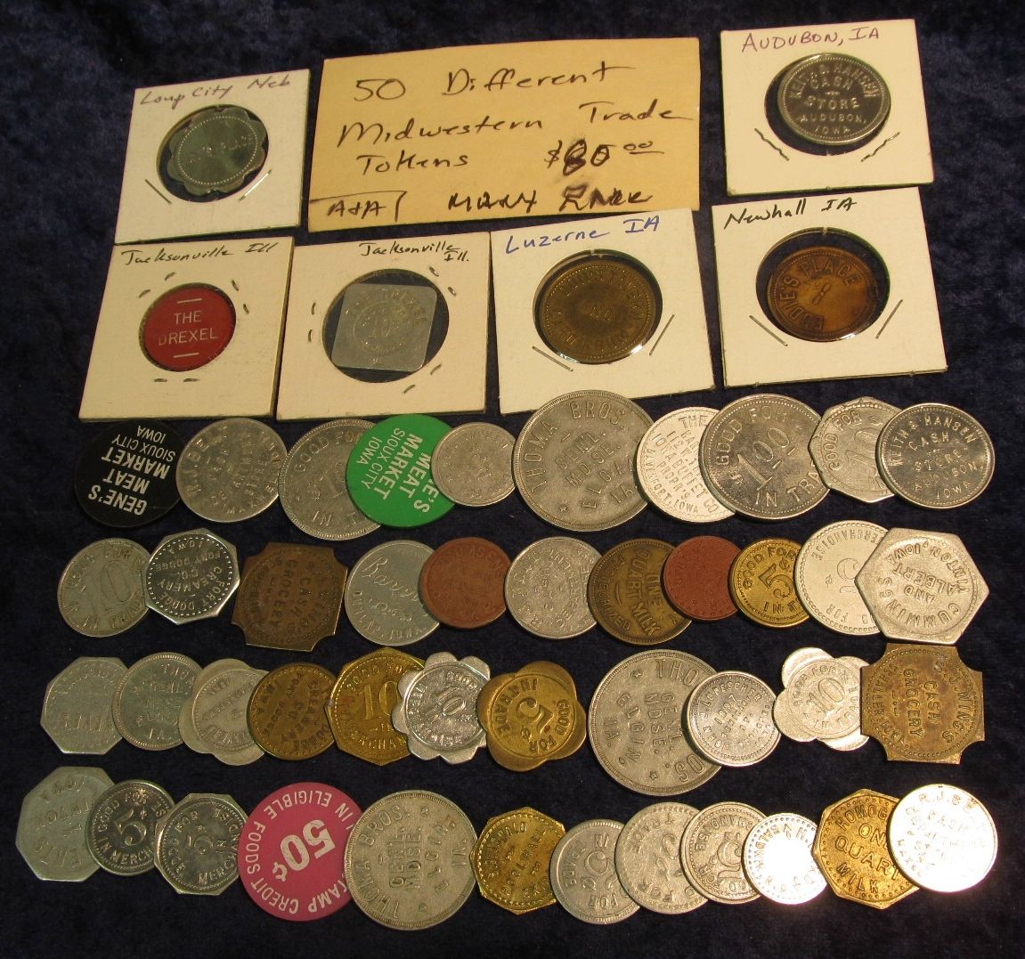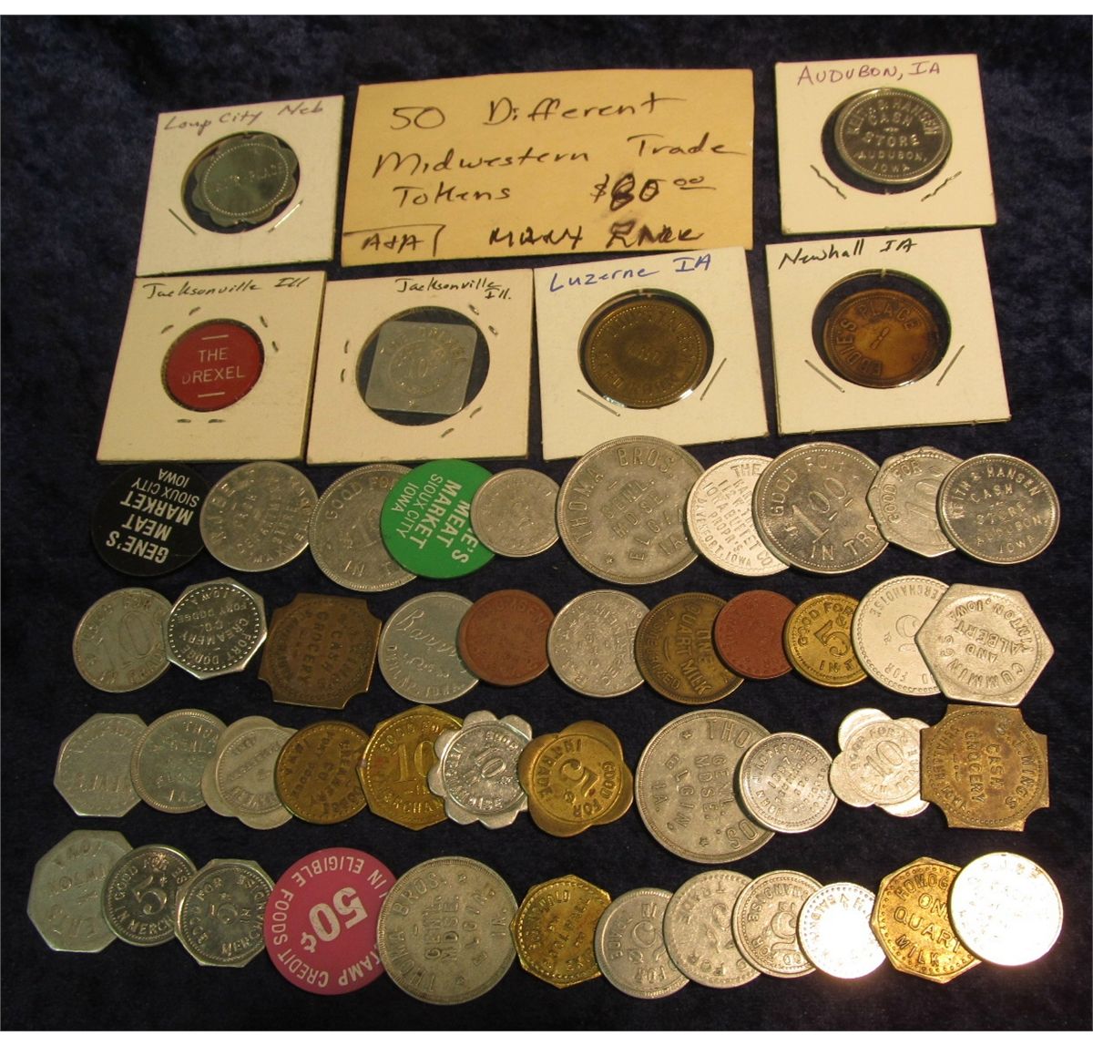 436. (50) Different Midwestern Trade Tokens. Some scarce.
