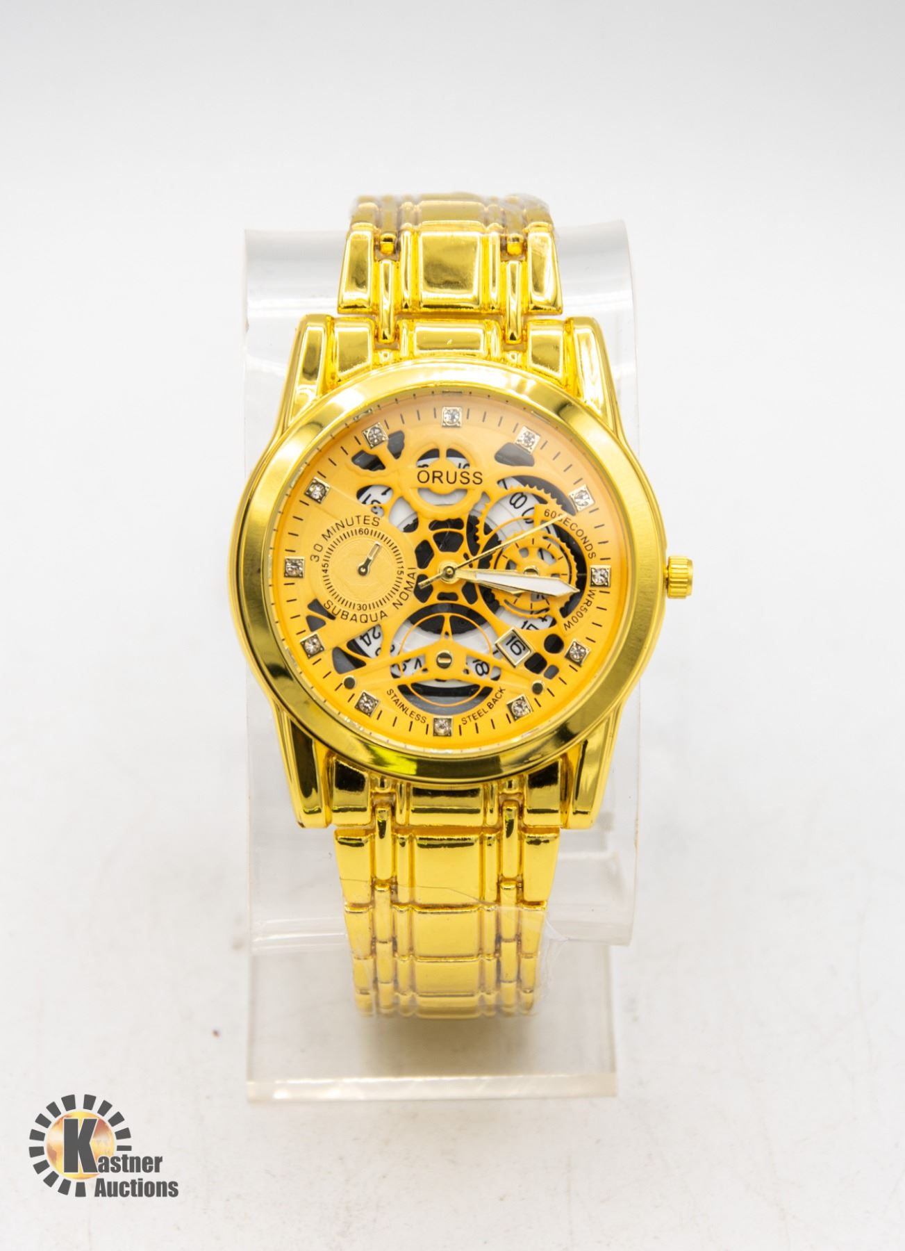 #437- BRAND NEW GENUINE ORUSS WATCH, GOLD TONE