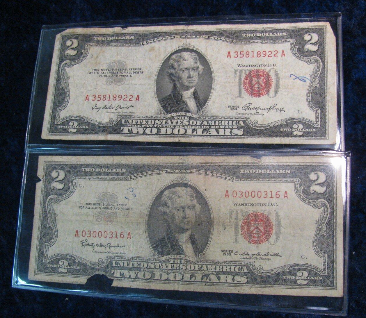 438. Series 1953 & 63 $2 U.S. Notes. "Red Seals" Circulated.
