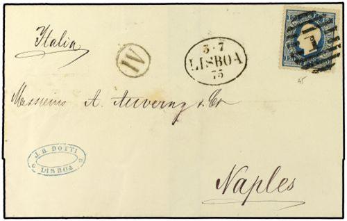 44 1875 LISBOA a ITALIA. 120 reis azul. MAGNIFICA.