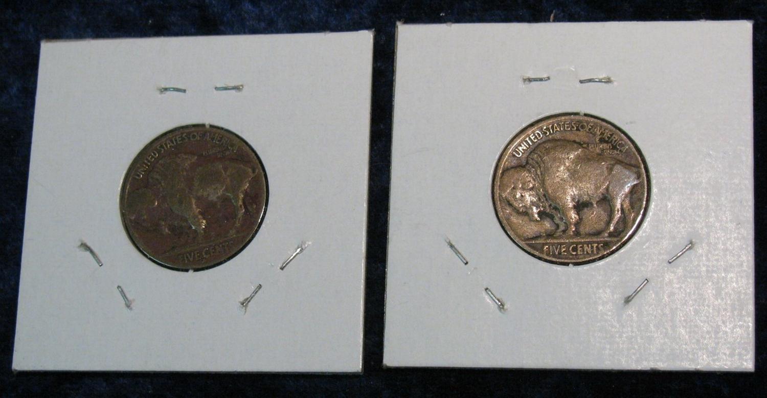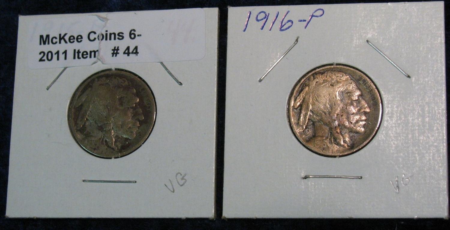44. 1915 D & 16 P Buffalo Nickels. G-VG. Dark. Cleaned.