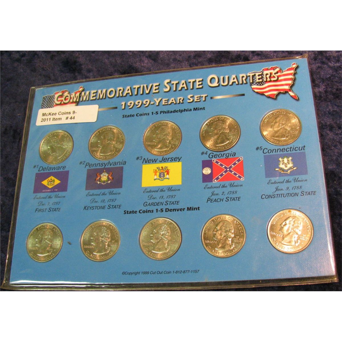 44. 1999 P & D Commemorative State Quarter Set. BU. Mounted in an attractive holder.
