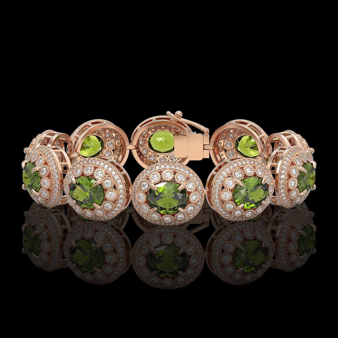 REF-1342H4R - SKU: 43731 ---- 44.22 ctw Tourmaline & Diamond Victorian Bracelet 14K Rose Gold