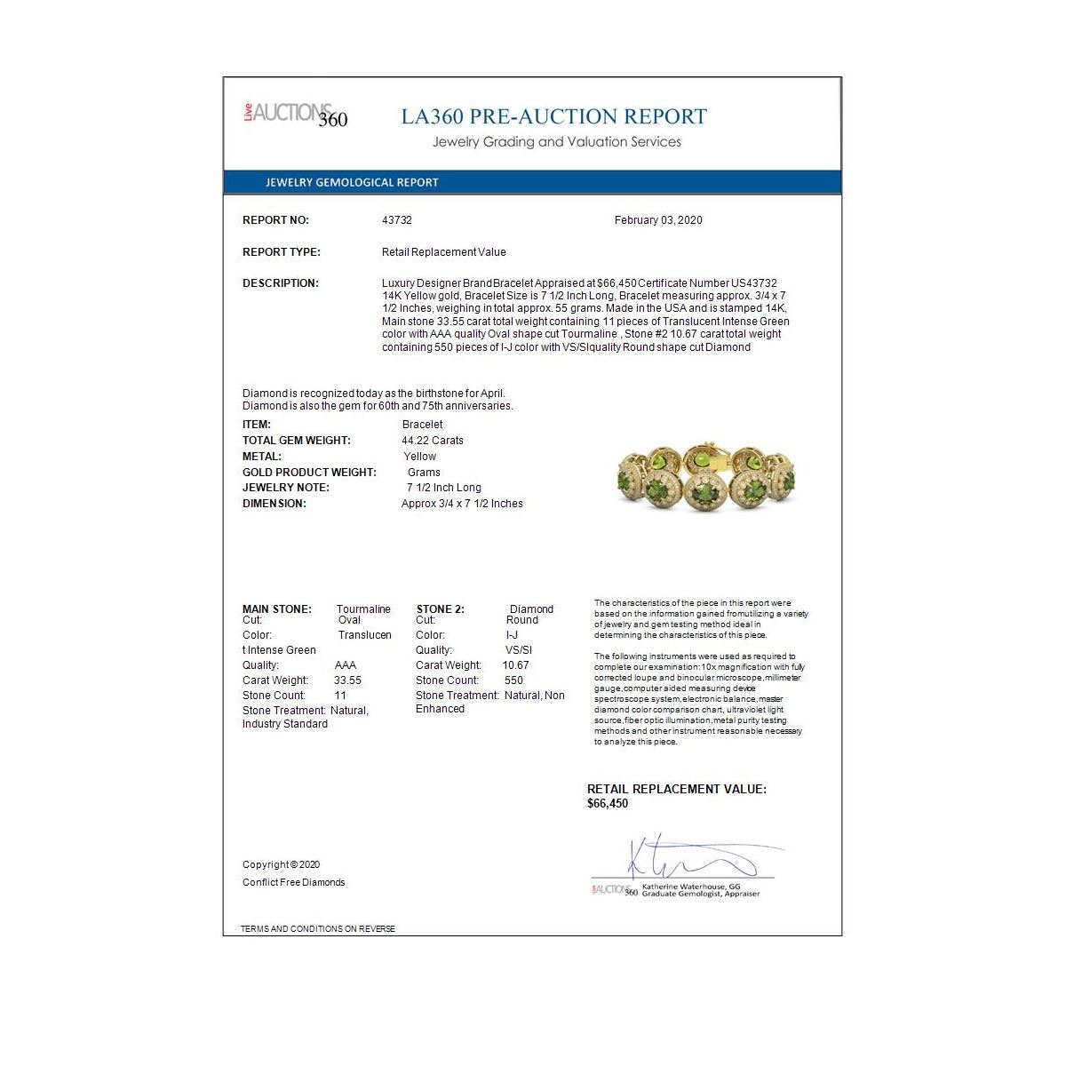 REF-1342M4G - SKU: 43732 ---- 44.22 ctw Tourmaline & Diamond Victorian Bracelet 14K Yellow Gold
