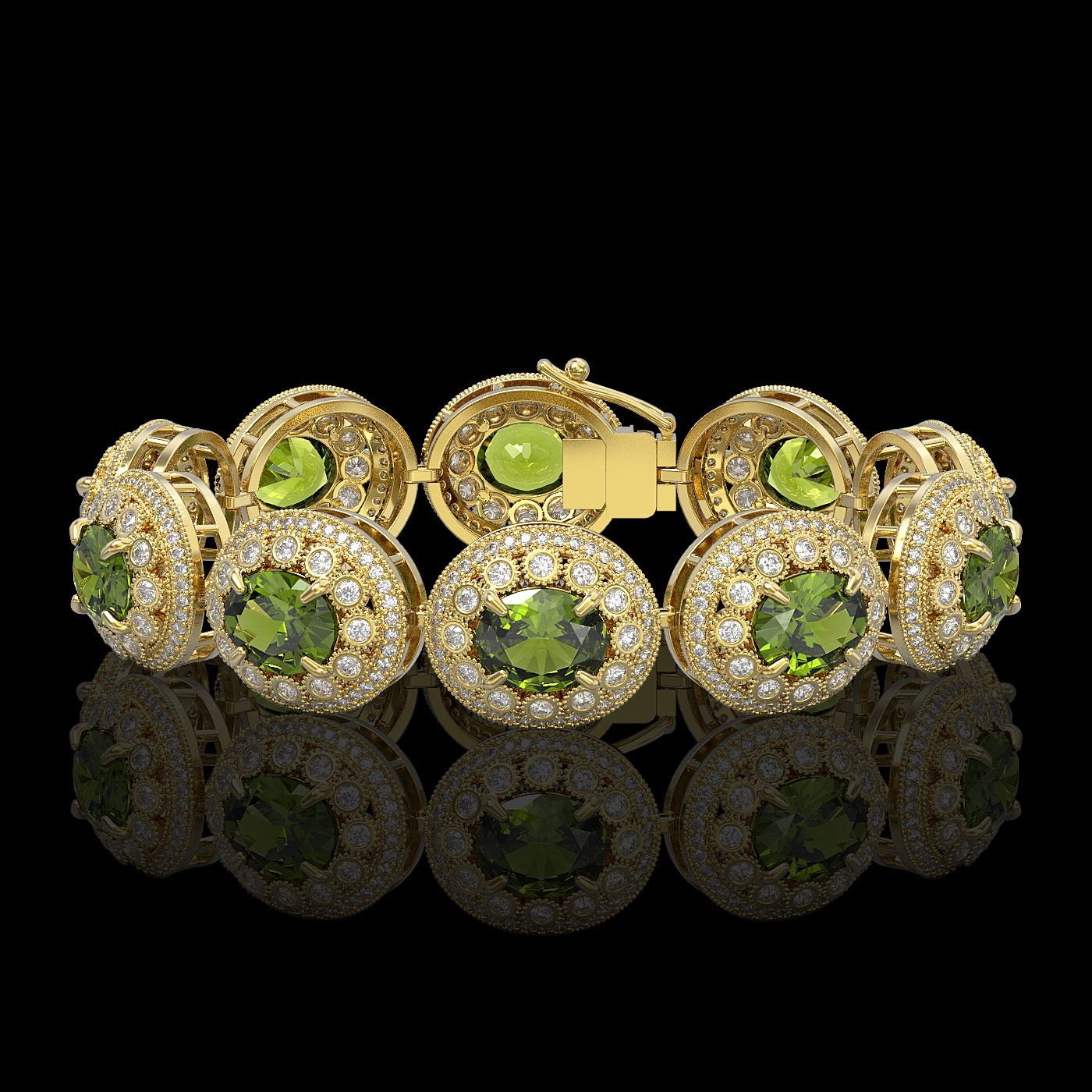 SKU: 43732 ---- 44.22 ctw Tourmaline & Diamond Victorian Bracelet 14K Yellow Gold