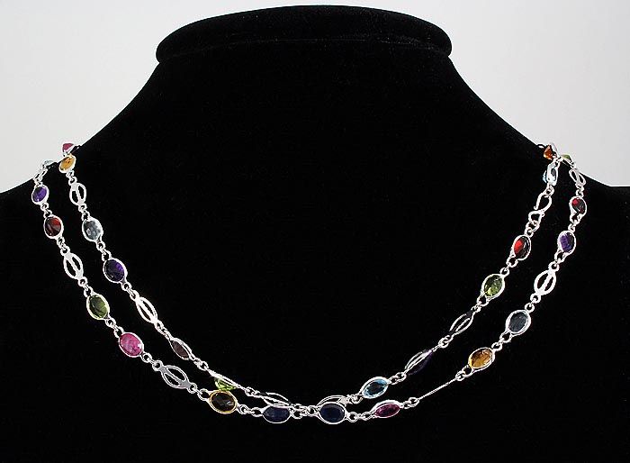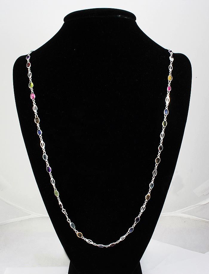 44.31CT Multi Precious Gemstone Silver Bezel Necklace 1 **|**|** 37" Long Multi Precious Gemstone in Bezel Design Silver Necklace; 46pcs 7x5mm ; MSRP: $900