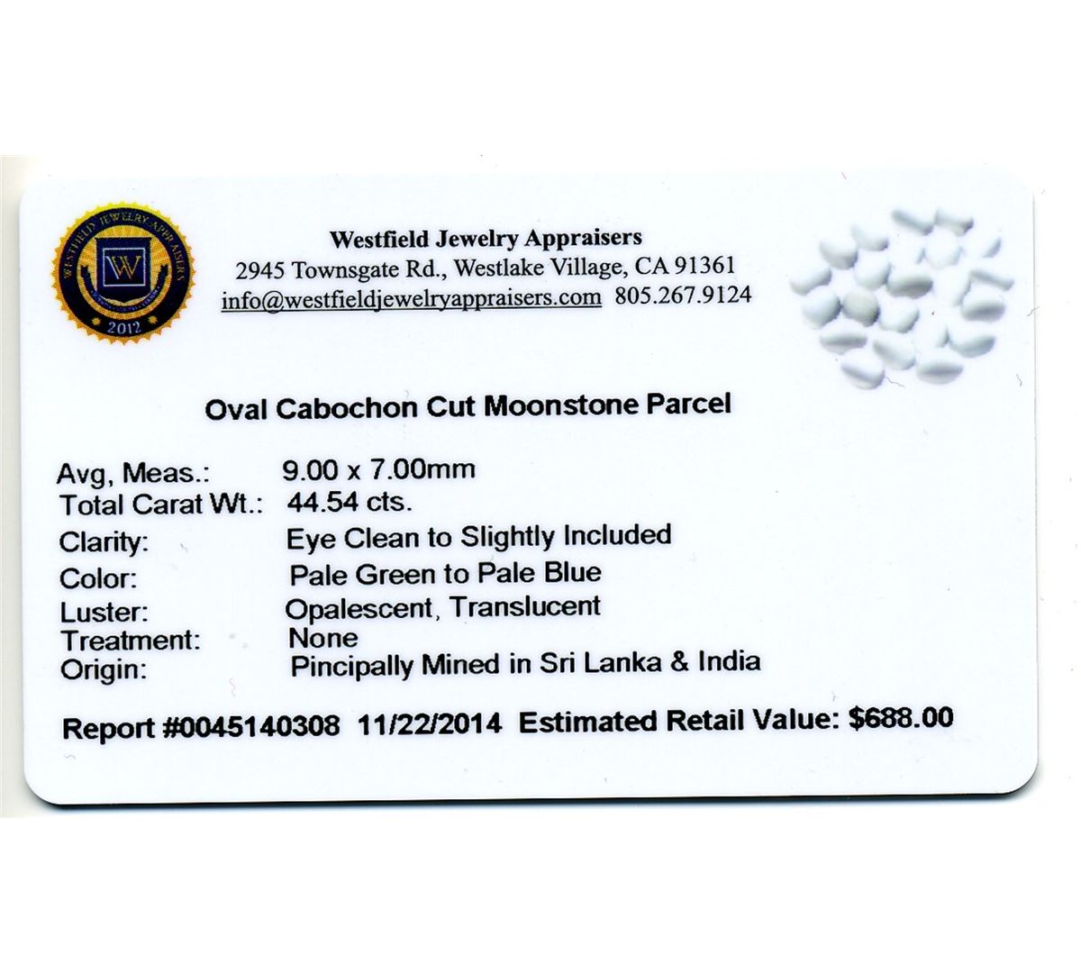 44.54ctw. Oval Cabochon Cut Moonstone Parcel. Westfield Appraised at $688.00.