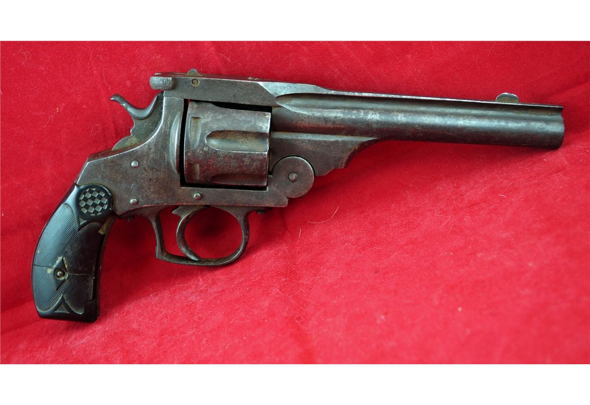 44 Cal. Belgium, 6 Shot Revolver, 5.75" Bbl., Top Break, Needs repair. Needs Repair, See photos for more information. Kennedys Auction Service has not attempted to test fire any gun in this auction and all guns are sold "IN AS IS CONDITION" and are not guaranteed to be operational.