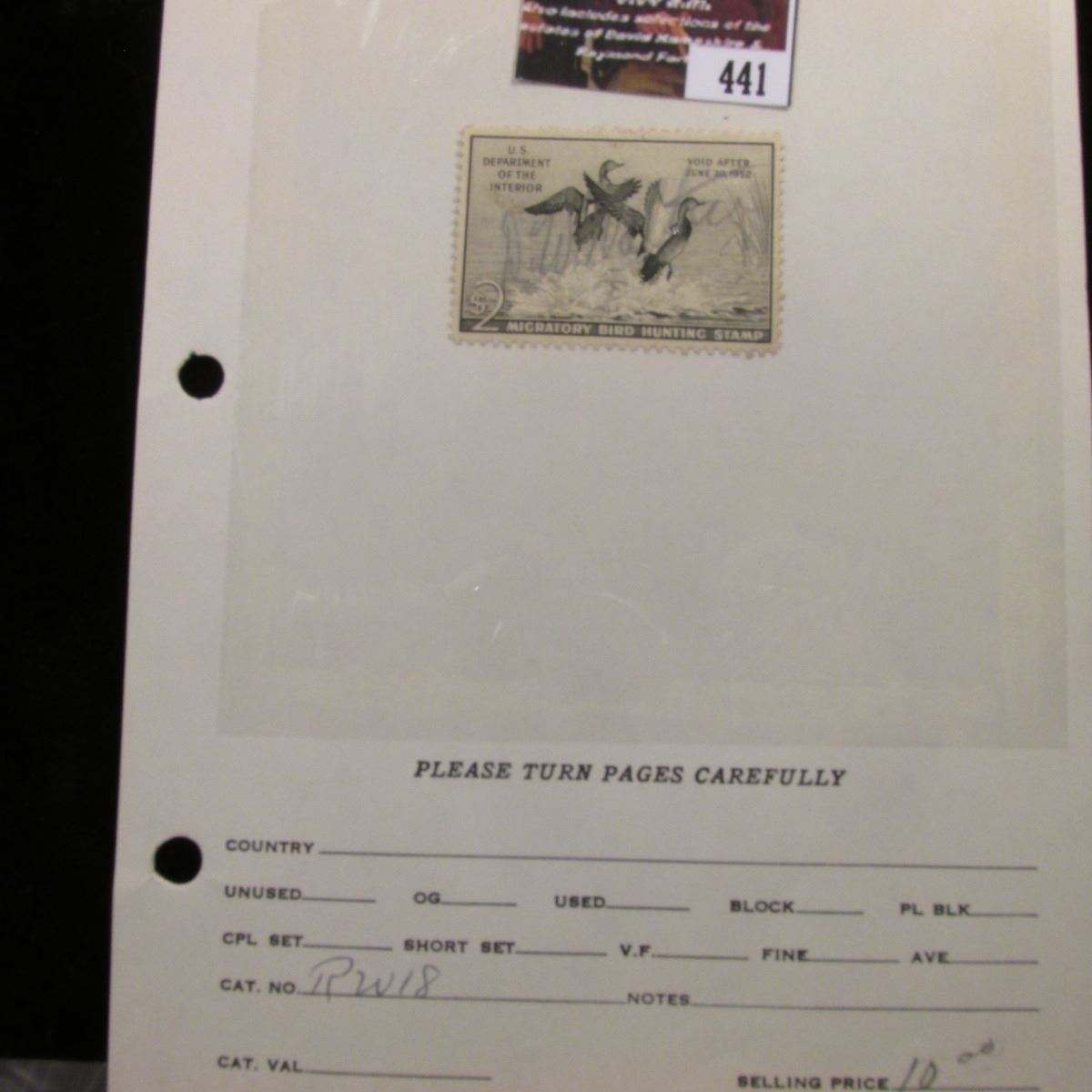441.1951 U.S. Migratory Bird hunting Stamps, RW18, used, signed.