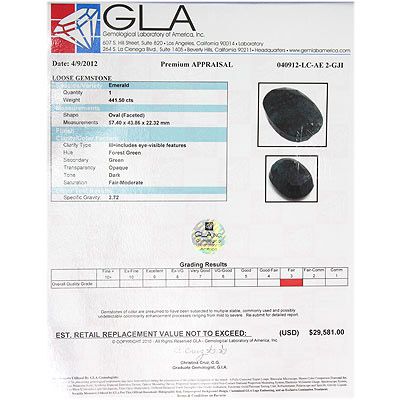 441.50ct Natural Oval Faceted Emerald Gemstone **|**|** Loose Emerald Gemstone Oval Faceted Shape 57.40x43.86x22.32mm in size ; MSRP: $1900