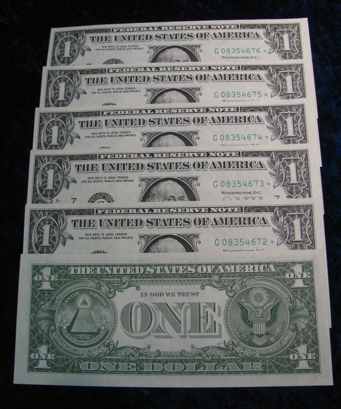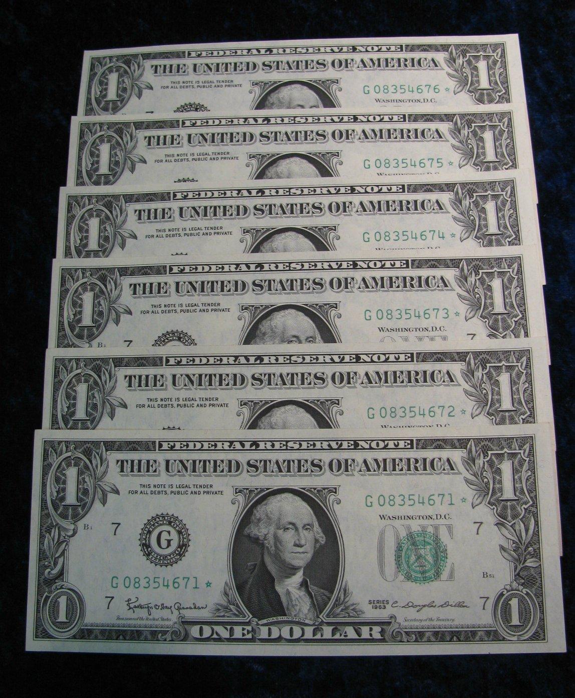 442. (6) Consecutive Serial Number Series 1963 $1 Federal Reserve Notes. CU. Very rare!
