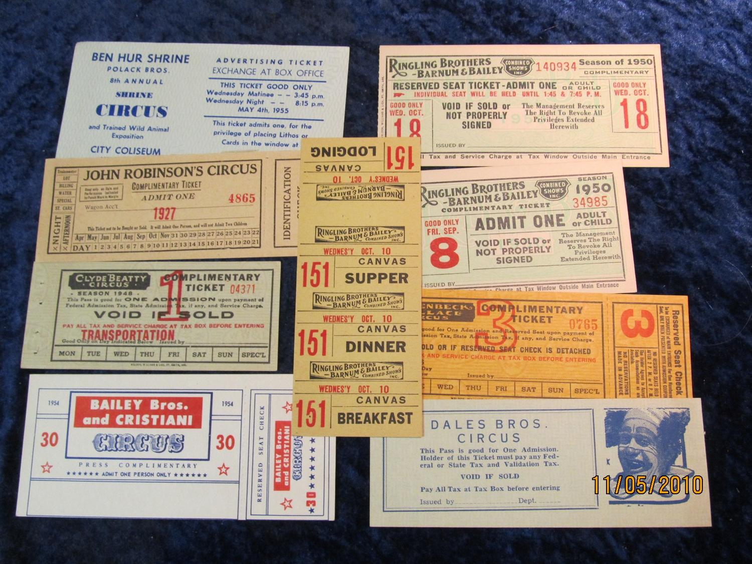 444. (9) Different Circus Tickets issued circa 1940.