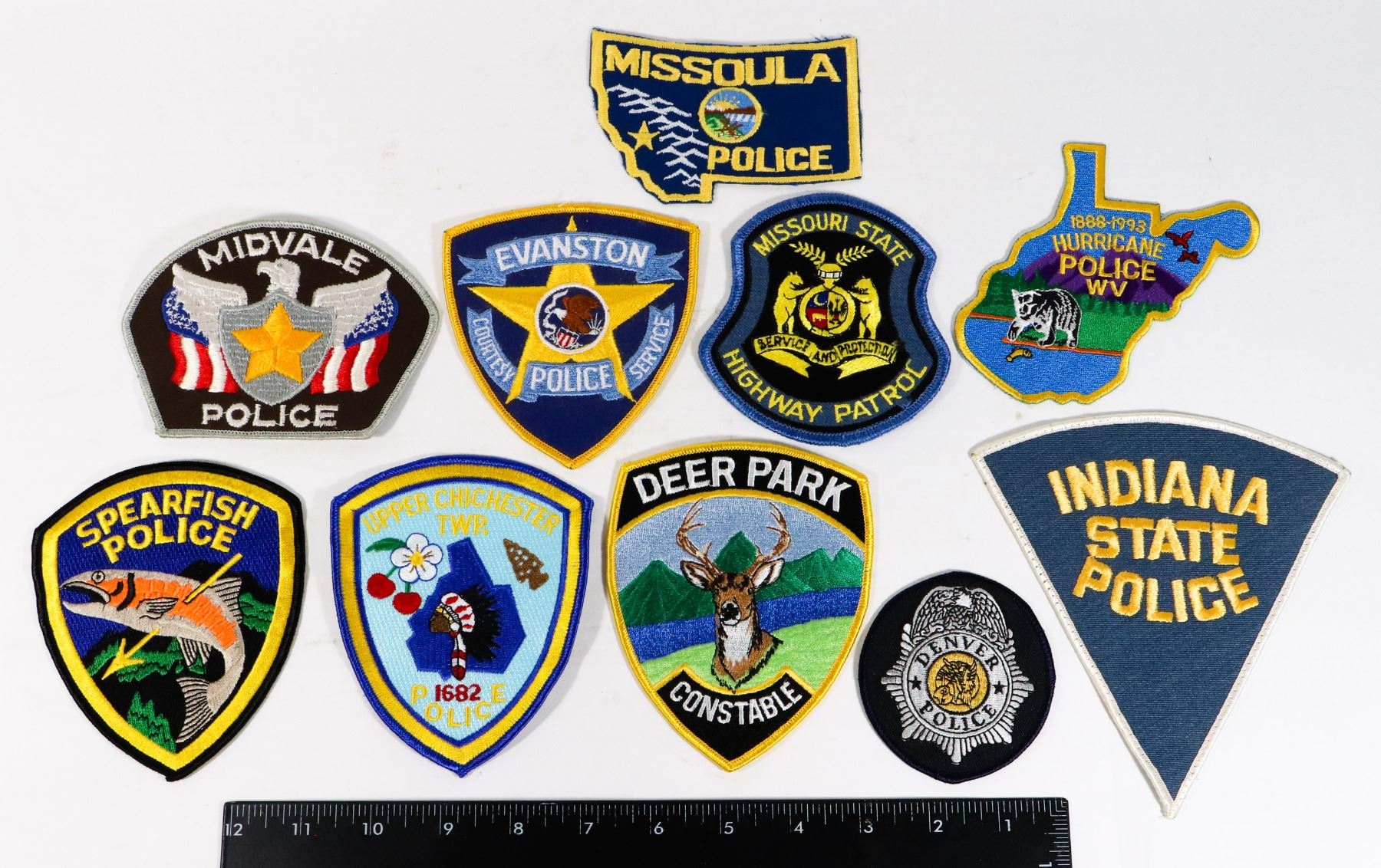 INDIANA MISSOURI MISSOULA WEST VIRGINIA UNITED STATES OF AMERICA VINTAGE LAW ENFORCEMENT POLICE INSIGNIA PATCH CREST USA