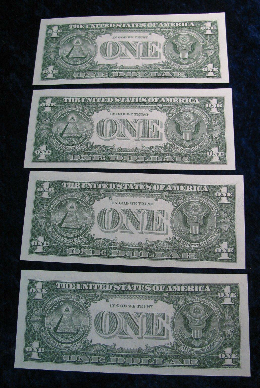 446. (4) Consecutive Serial Number Series 1957B $1 Silver Certificates. CU.